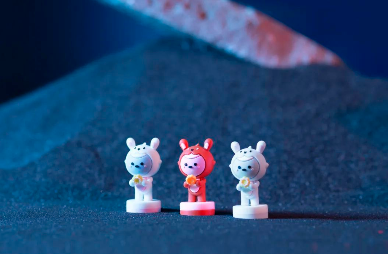 藍、橙、白三色的 歡歡公仔手辦萌動人心。