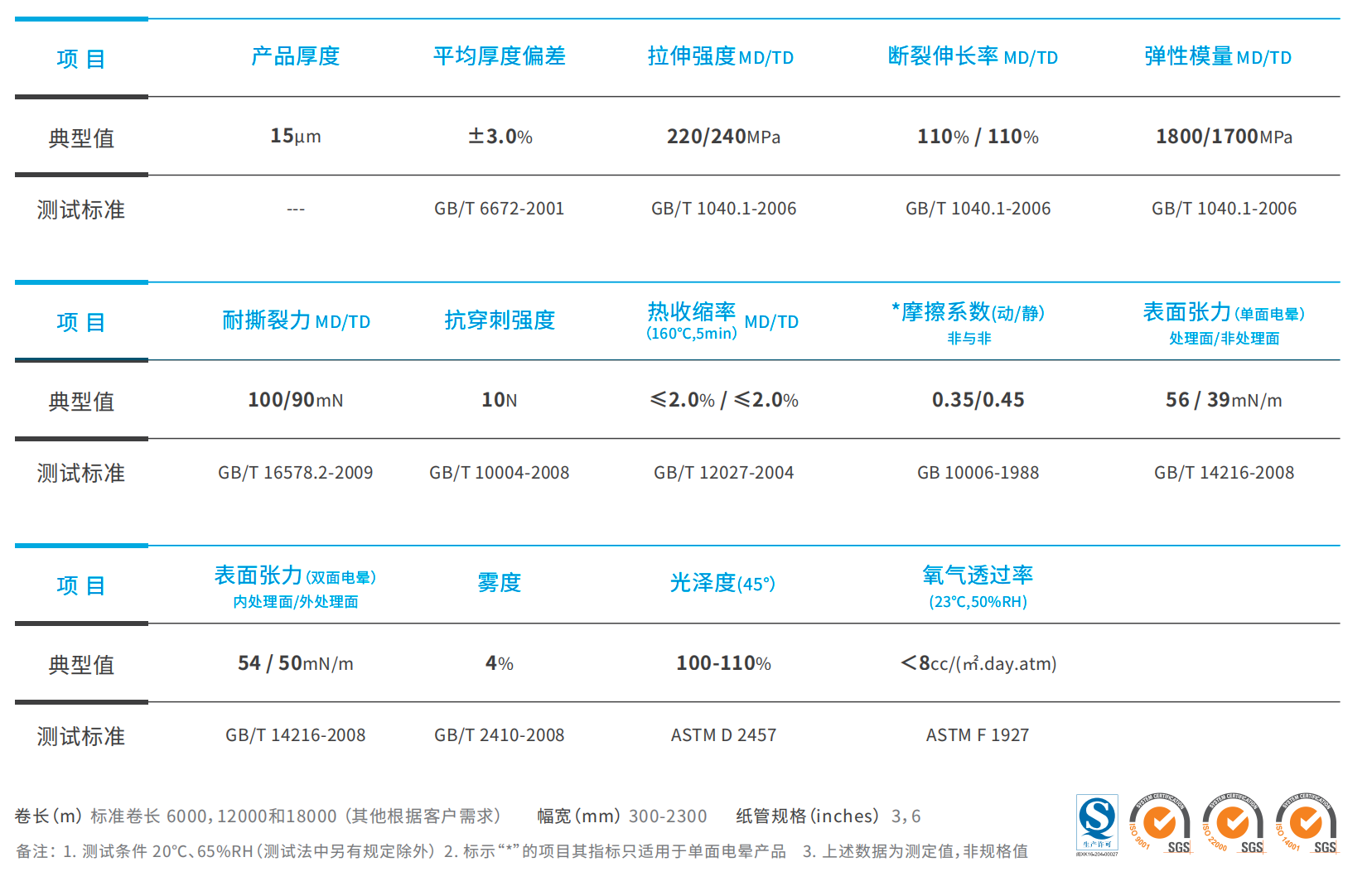 各項性能(強(qiáng)度,收縮率,平整度,光潔度,霧度等)表現(xiàn)優(yōu)異